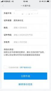 接着,我们点击确认就会进入一卡通升级界面,提交自己的相关信息后,勾选已同意,随后点击立即升级。
